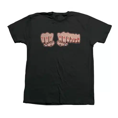 The Toy Machine Fist Tee features one of the brand’s most recognizable and defiant graphics. Created by founder and artist Ed Templeton, the “Fists” design is a playful yet “tough” take on traditional knuckle tattoos, perfectly capturing the DIY, anti-establishment spirit of 1990s skateboarding.