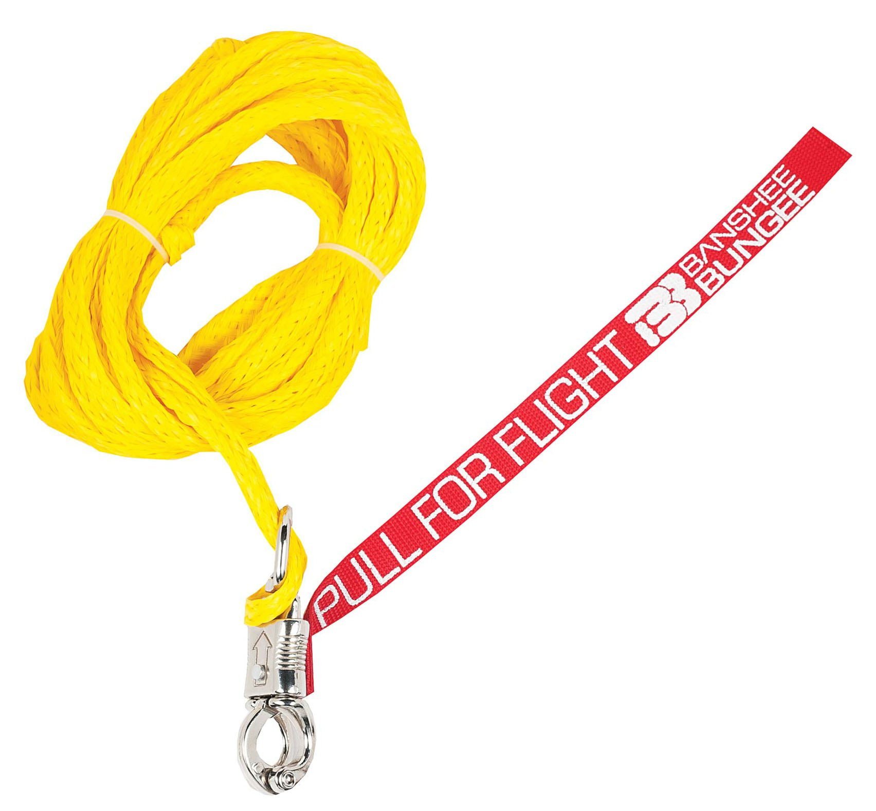 With much demand from the market, we have developed the Banshee Bungee Quick Release. The Quick Release system helps simplify the Bungee process, changing the way we ride yet again. The package consists of the Quick Release Clip and a 30 ft lead line. Simply attach the lead line to a secure anchor point, then hook the Quick Release Clip to your handle. At this point, take a breather, strap in, get your focus, then grab the “Pull for Flight” tab to release the clip. Before you know it, you’re gone! Eliminating the need for an army of friends to hold your Bungee at maximum length, the Quick Release does the work for you.