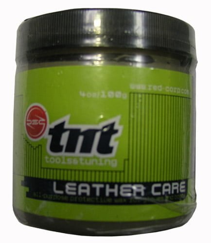 RED leather care is a natural wax and will not weaken or decay or break down the leather like greases, oils, and animal fats. It allows the leather to breathe and keeps you dry while you ride.