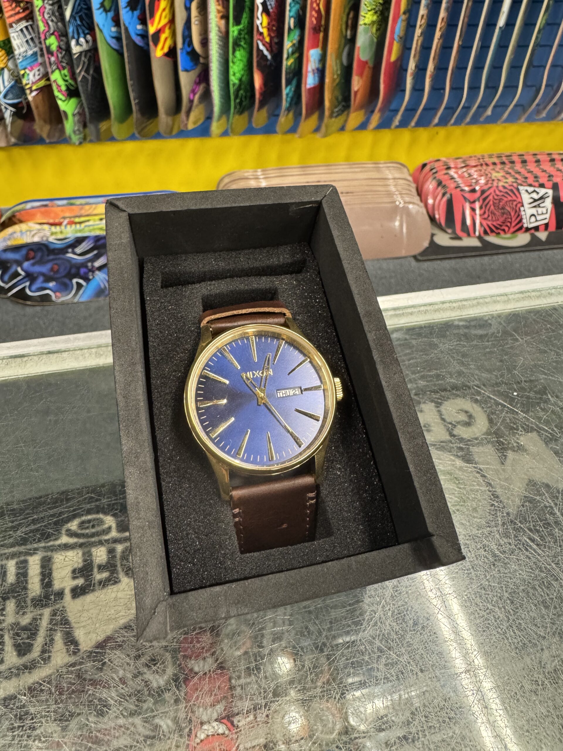 The Nixon Sentry Leather in Blue/Brown is a versatile timepiece that balances a “black tie” aesthetic with a rugged, “block party” construction. Designed for all-day wear, it features a clean analog face with a dedicated day/date window and a premium leather band that ages with character.