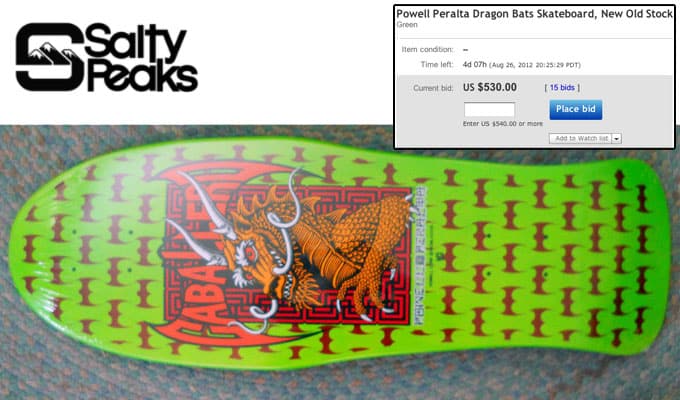 Finally we got an old favorite, the vintage Powell Peralta Dragon Bats! Coming in at $530! Check your attics, check garage sales, look under rocks…these old decks are worth DOUGH!